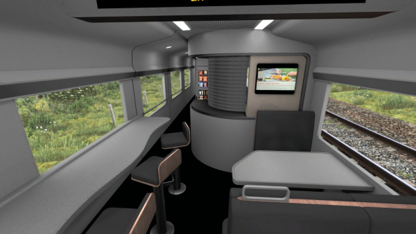 Brmpz – Bistro-Wagen mit Sitz- und Stehplätzen sowie Snackautomaten
