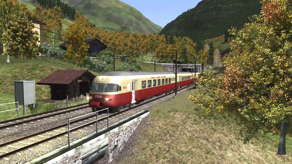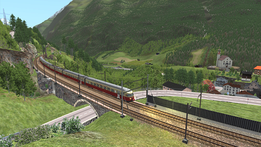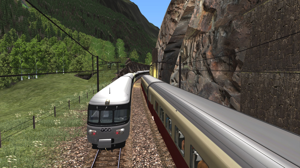 Göschenen bergwärts, TEE auf linkem Gleis, die Maus auf dem rechten. Unterwegs