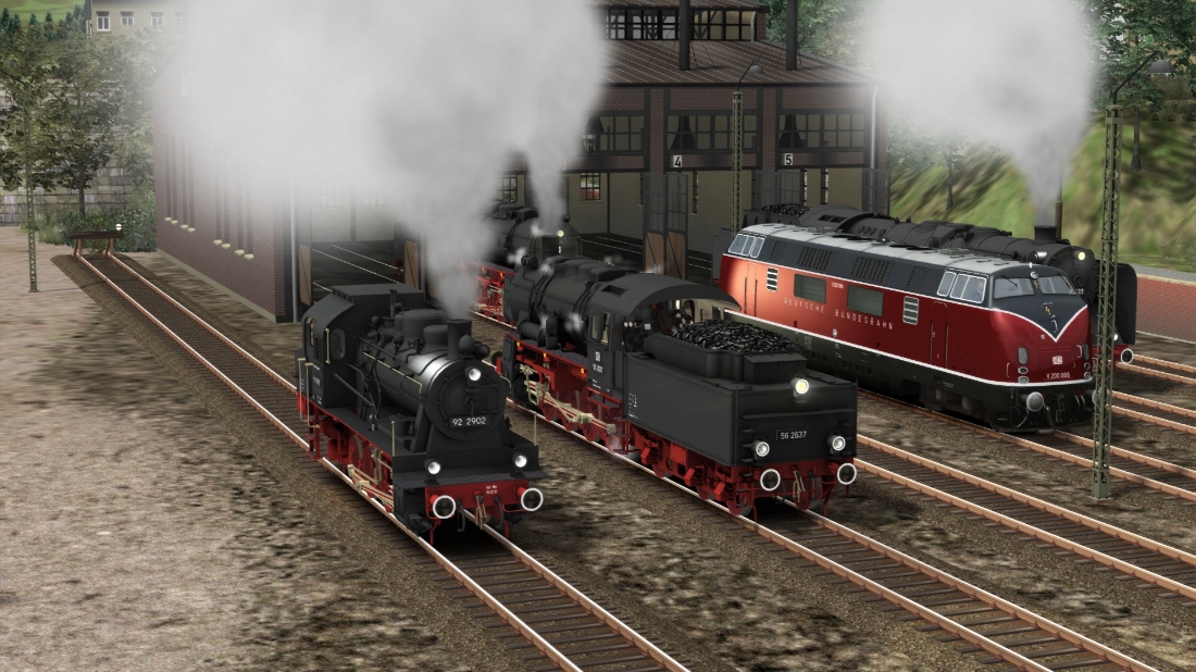 convoys, as well as numerous electric, diesel, and steam locomotives, wagons,